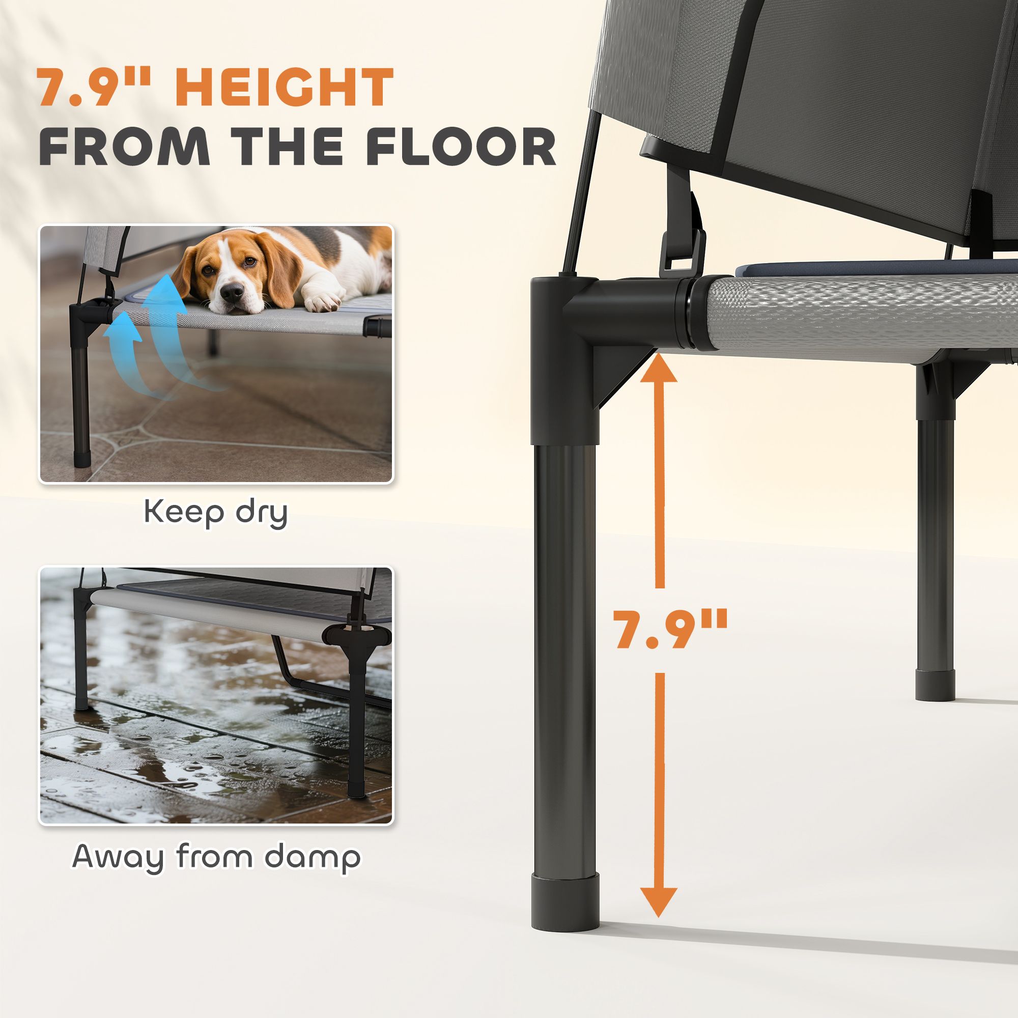 Give your pup a chill spot with PawHut elevated outdoor dog bed! This raised retreat keeps your dog 7.9" above ground - great for staying cool and dry. Three-sided canopy blocks harsh sun, while mesh sides let fresh air flow through. When adventure calls, it folds up neatly into the included carry bag for trips to the park or beach. Built tough yet comfy, it's your dog's new favorite nap zone anywhere, anytime. Watch their tail wag with joy as they lounge in shaded comfort!