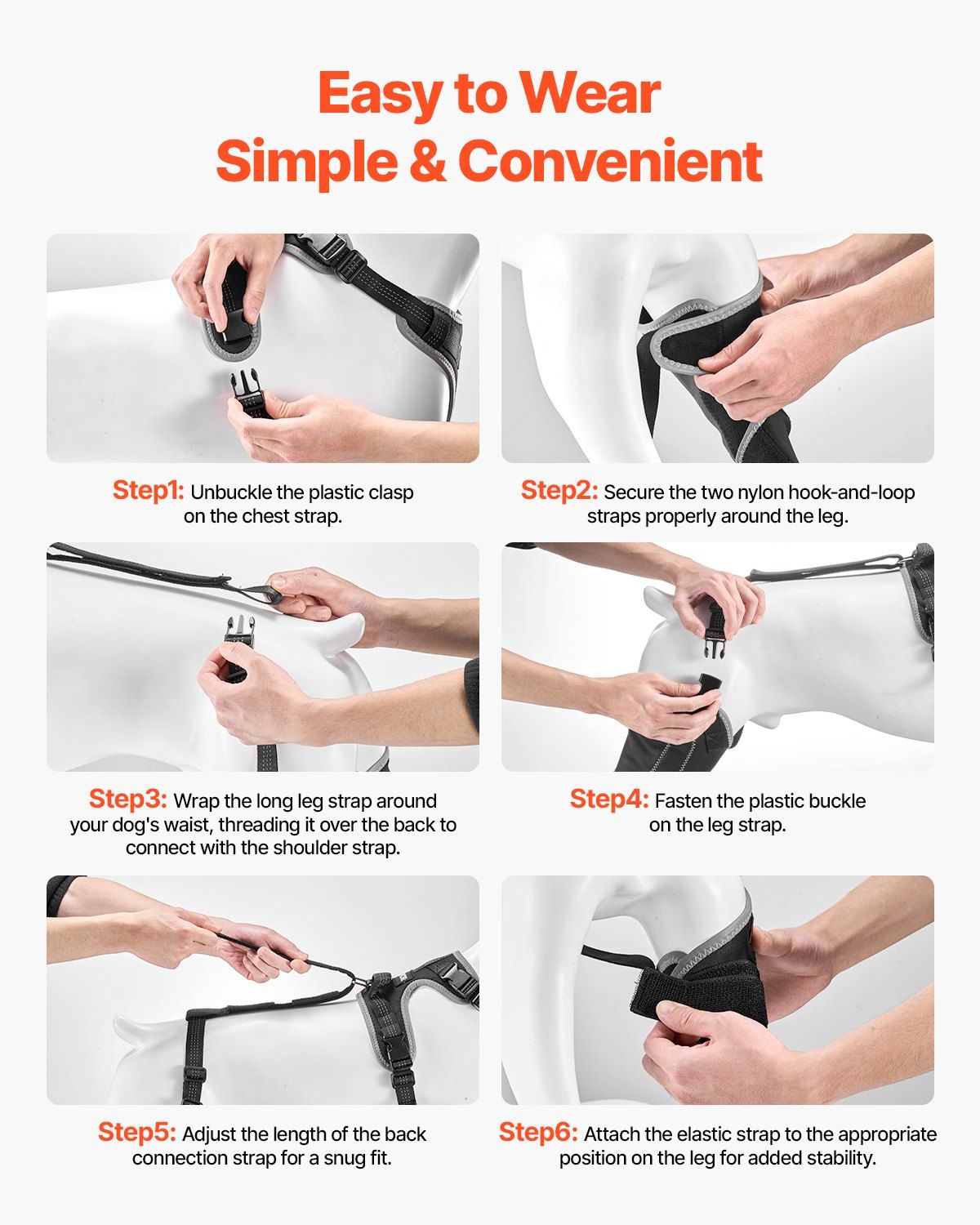 2.Easy to Wear and Use: This simple and clear wearing steps, along with instructional videos, ensure quick and easy fitting for your dog, saving you time and effort.