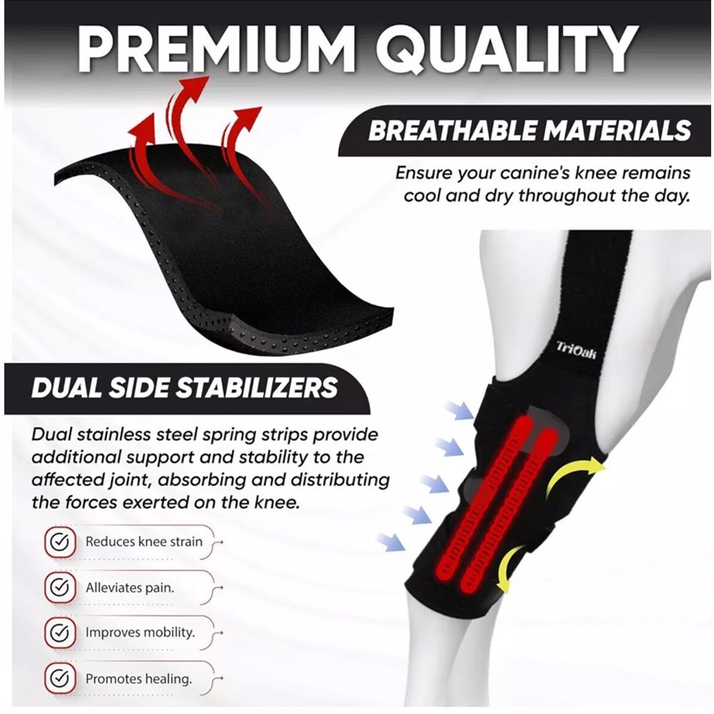 ✦ [Quality Comfort Care] This dog acl knee brace is crafted with precision and expertise, dog knee brace is designed to provide dog knee support to dogs facing the challenges of ACL injuries. Soft yet durable materials of our dog acl knee brace ensure your dog can wear it for extended periods without discomfort, allowing them to focus on healing and regaining their mobility. With this dog leg brace, your pet can enjoy a pain-free and active life once again.