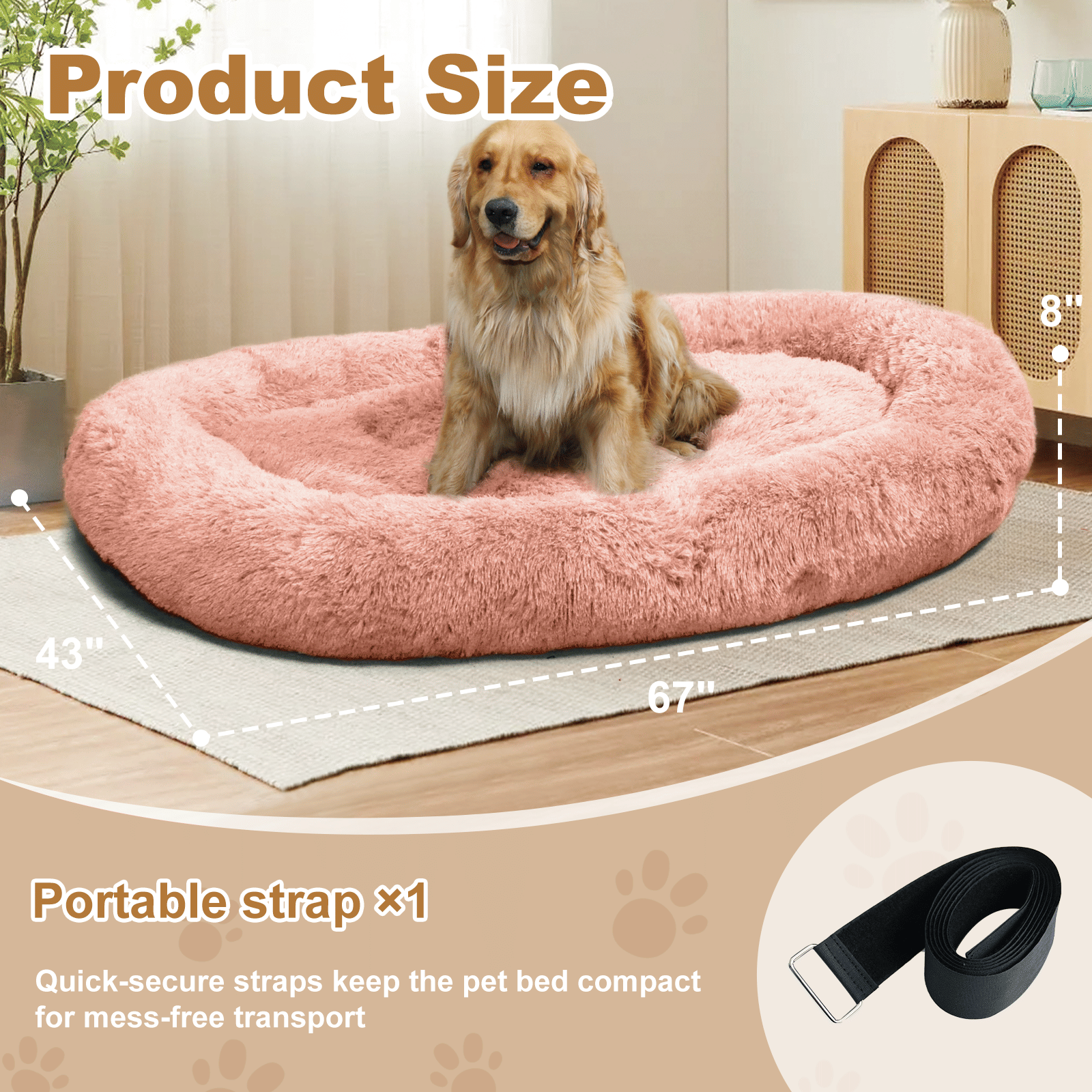 Large Dog Bed 67x43x8 Inches - Super Soft, Machine Washable & Portable With Handles, Non-Slip Bottom For Safety - Pink