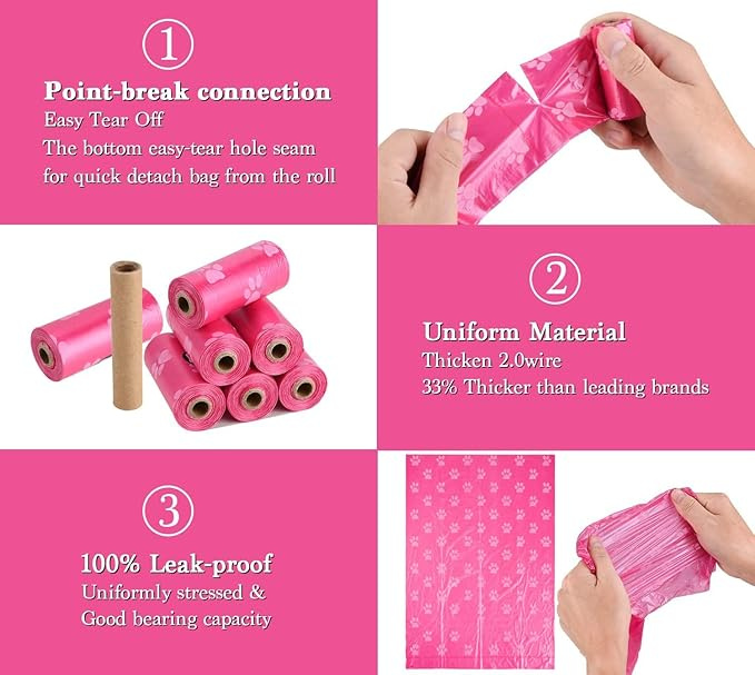 Dog Poo Bags Corn Starch Blended  Extra Thick Strong - PINK Dog Poo Bags Corn Starch Blended  Extra Thick Strong - PINK Dog Poo Bags Corn Starch Blended  Extra Thick Strong - PINK